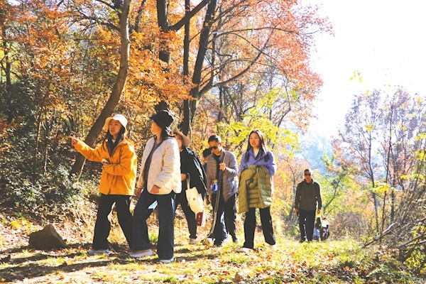 活动当天,大家齐聚随州人才公寓广场。到达徒步起点后,他们一起走在螺石寨山步道上。初冬的山林都染上了颜色。大家打卡欣赏风景,互相帮助,在欢声笑语中拉近了距离,充分体验随州的自然美景。